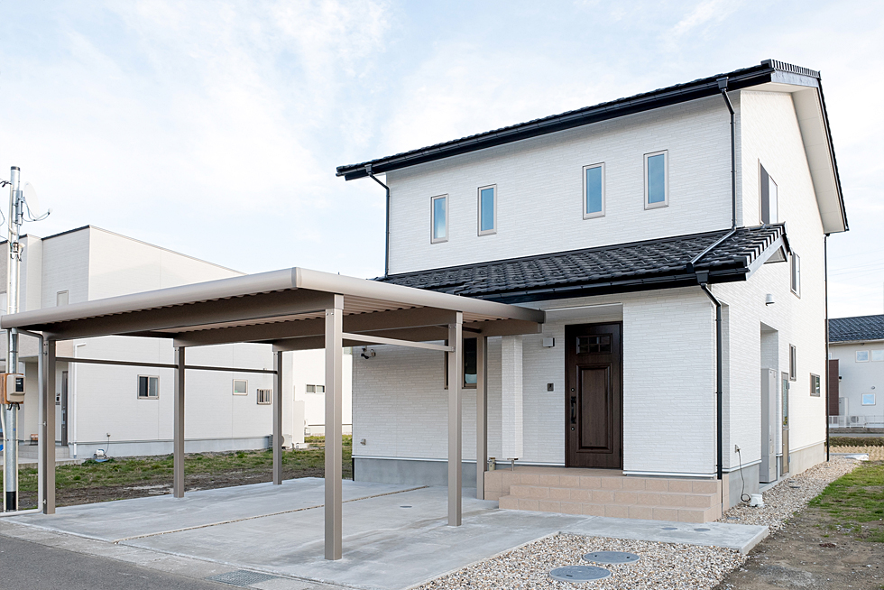 | 仕様 | 建物の断熱性能はもちろん、主な設備機器を含めて二酸化炭素(CO2)の排出量を大幅に削減する[低炭素住宅]。 <断熱材> 屋根.壁.土間:エアライト吹付 |